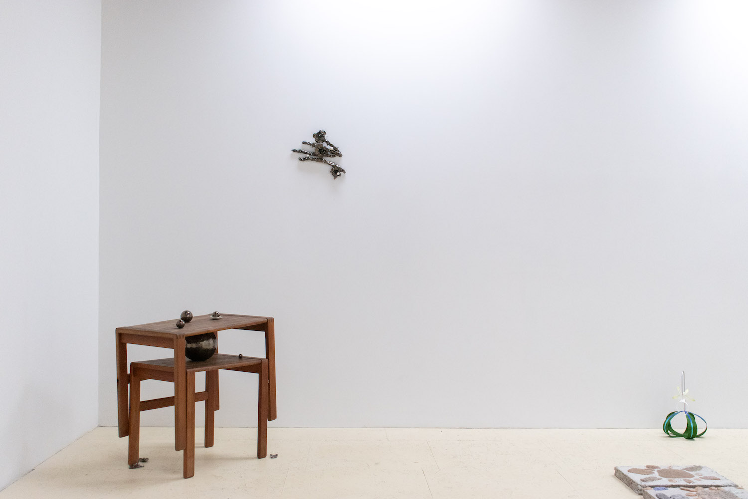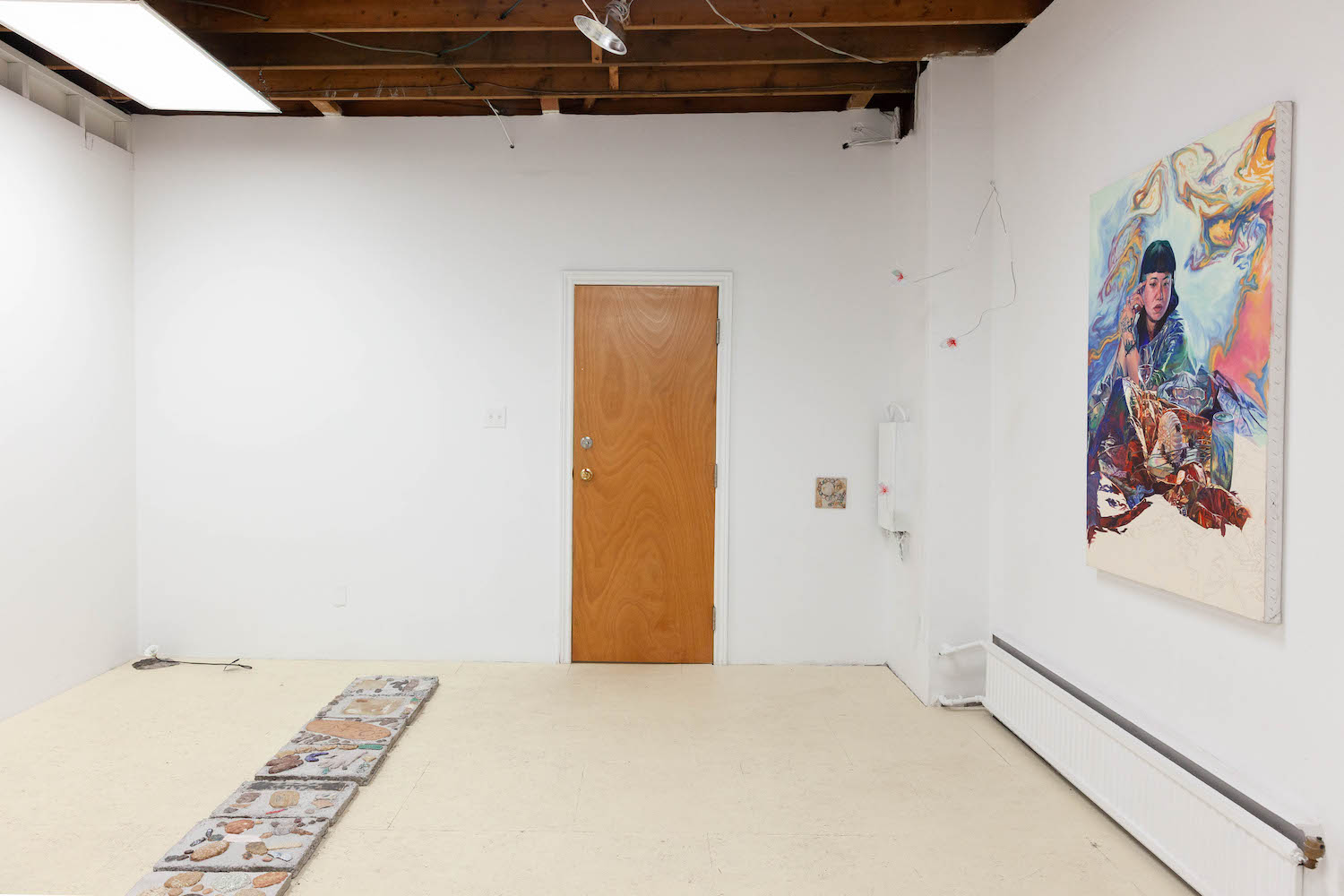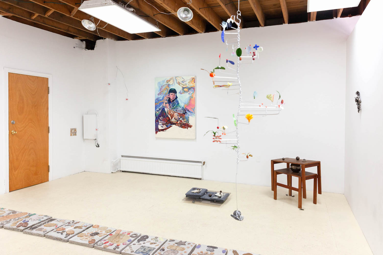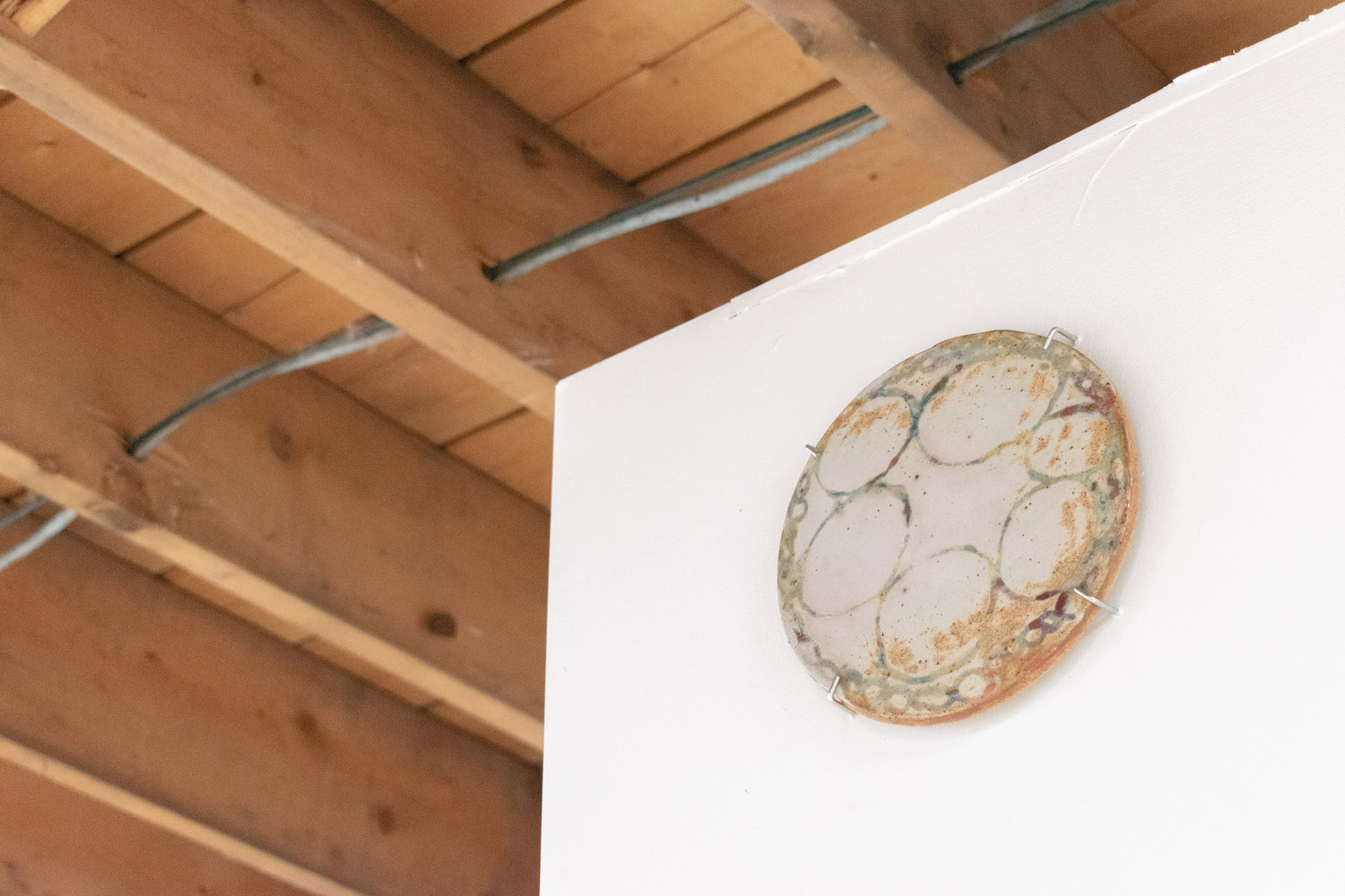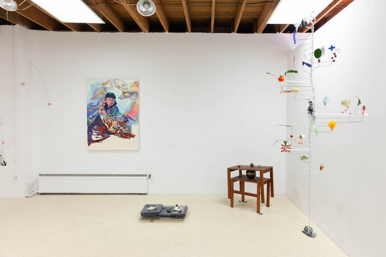 Biblical in origin, the idiom “at the eleventh hour” imparts resolution to a critical moment, usually in desperation. Implying the stress of time, the tenacity of work, belief systems, and oral tradition, the term’s sentiments appeal to us within contemporary usage. Spanning painting, sculpture, installation and ceramics, “At the Eleventh Hour” explores the interplay between labour, uncertainty and spirituality in the context of individual / collective experiences, personal / cultural mythologies, and art making as a laborious process. What external forces can carry on the work when we’ve reached our limits? Referred to as the “deus ex machina” within ancient Greek theater, actors who played angels were lowered onto stage to solve seemingly immovable problems through divine intervention. And so emerges a collective interest in structures of storytelling, theatricality, artifice, and the hero’s journey. In addition to an exhibition, “At the Eleventh hour” doubles as a stage for 3 play-inspired public performances set to occur towards the end of the show run.