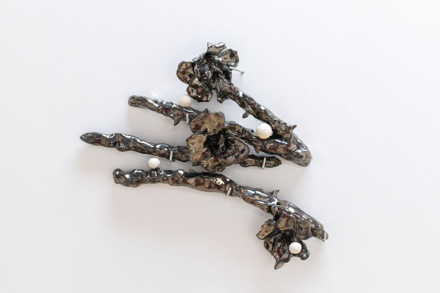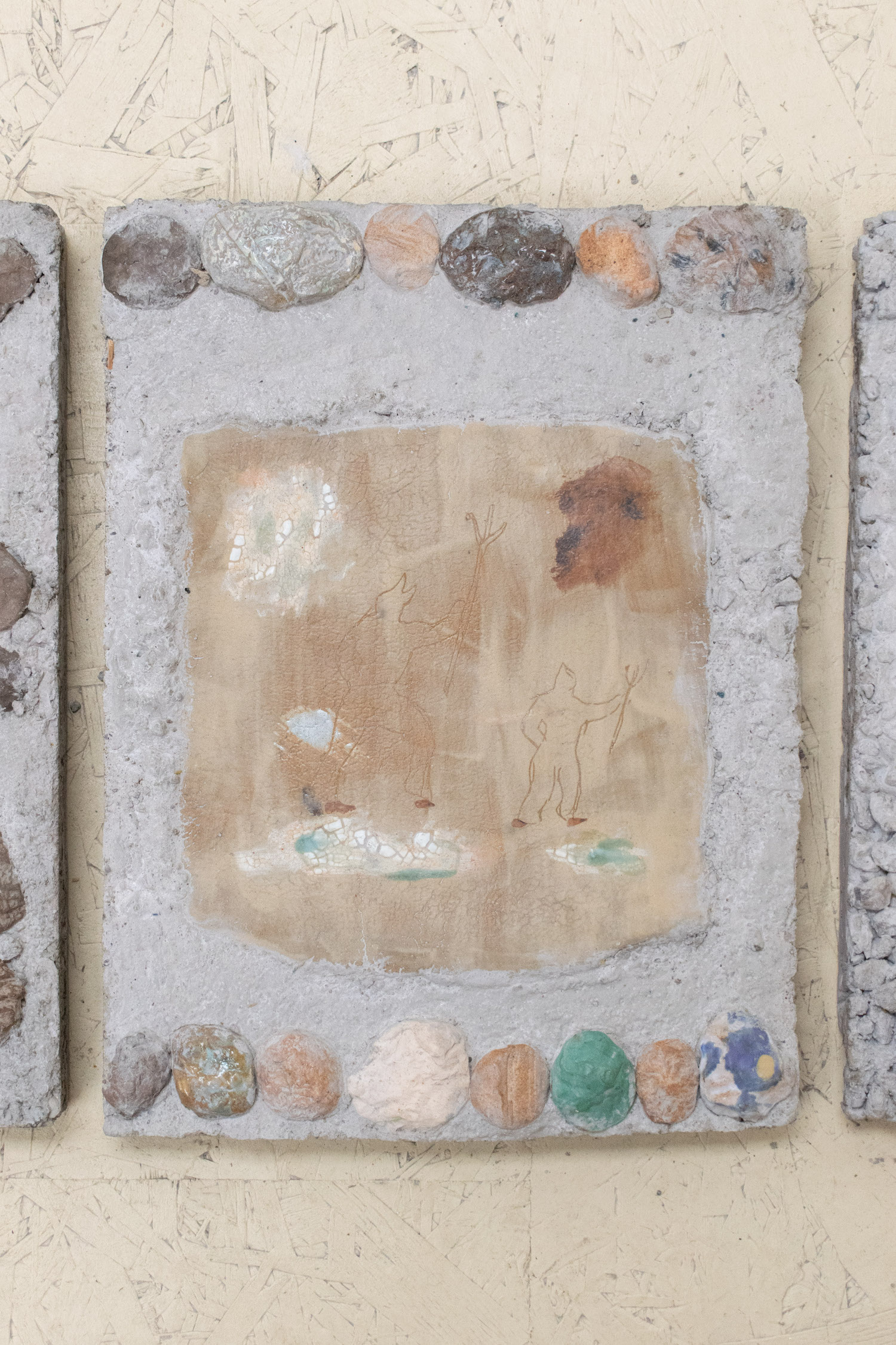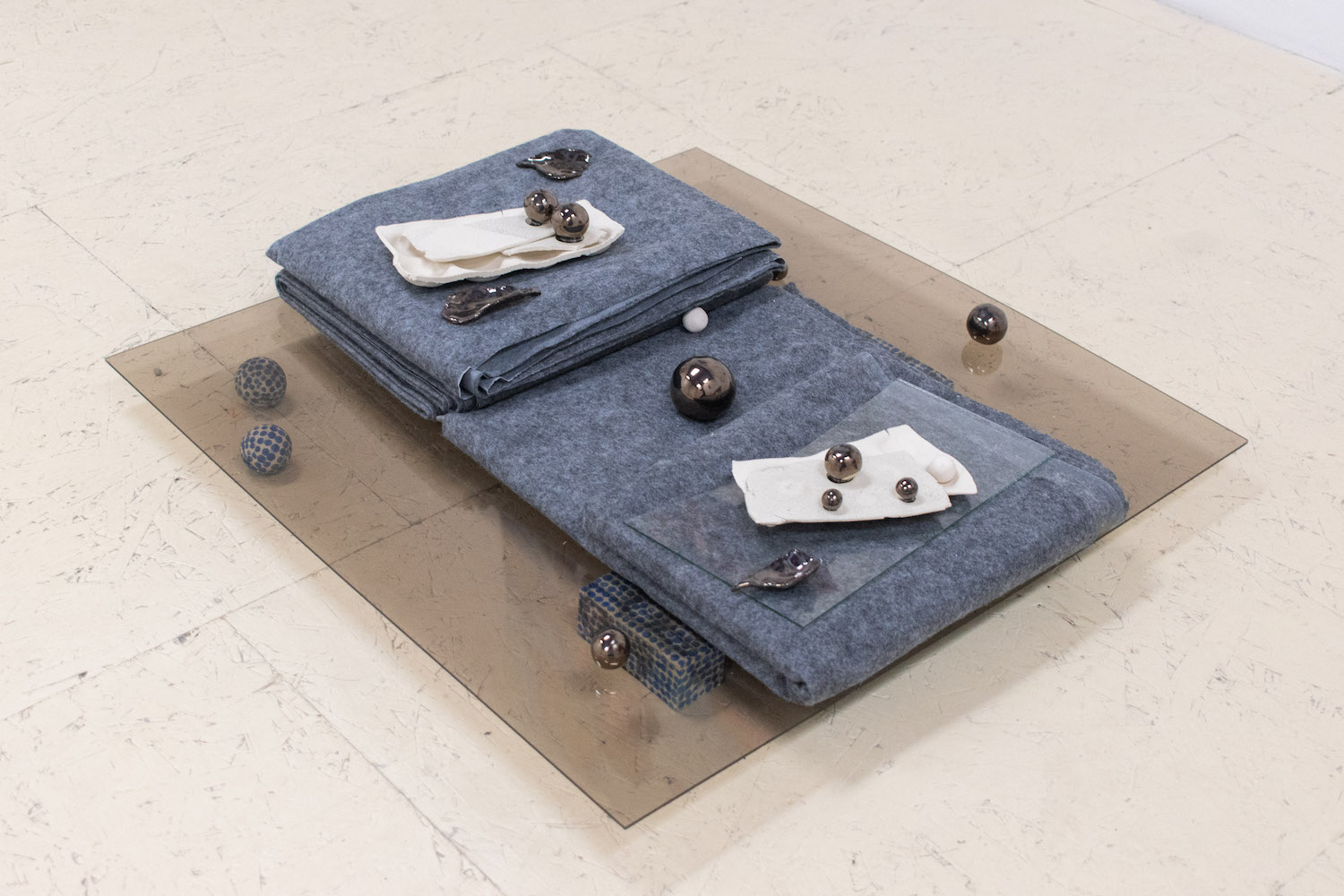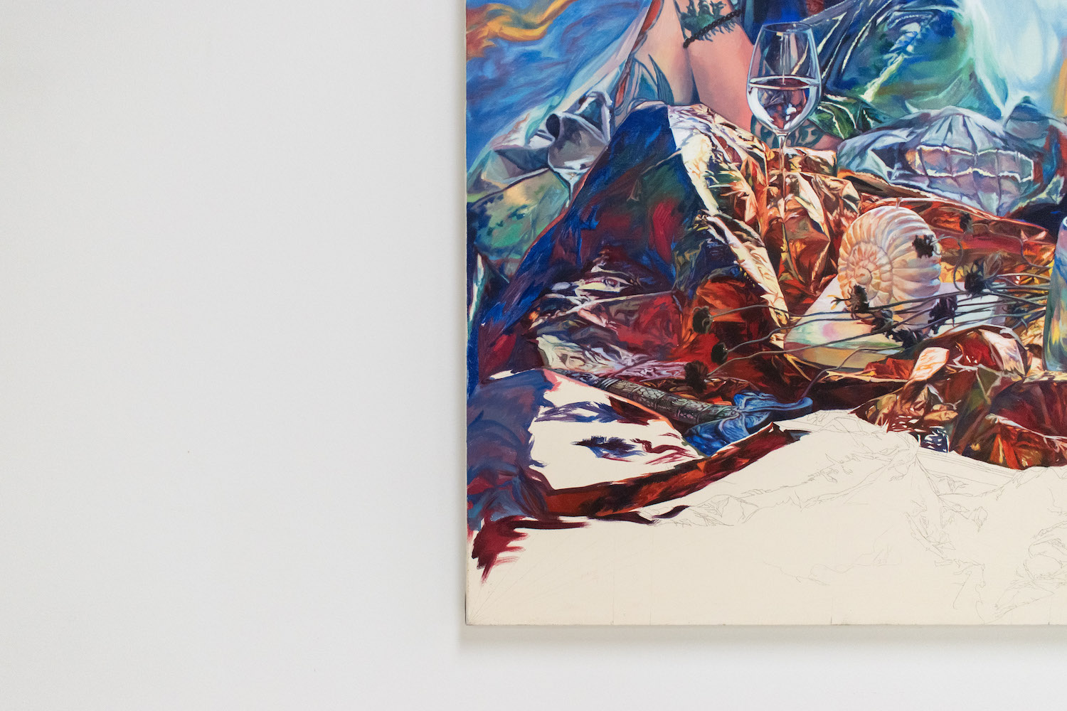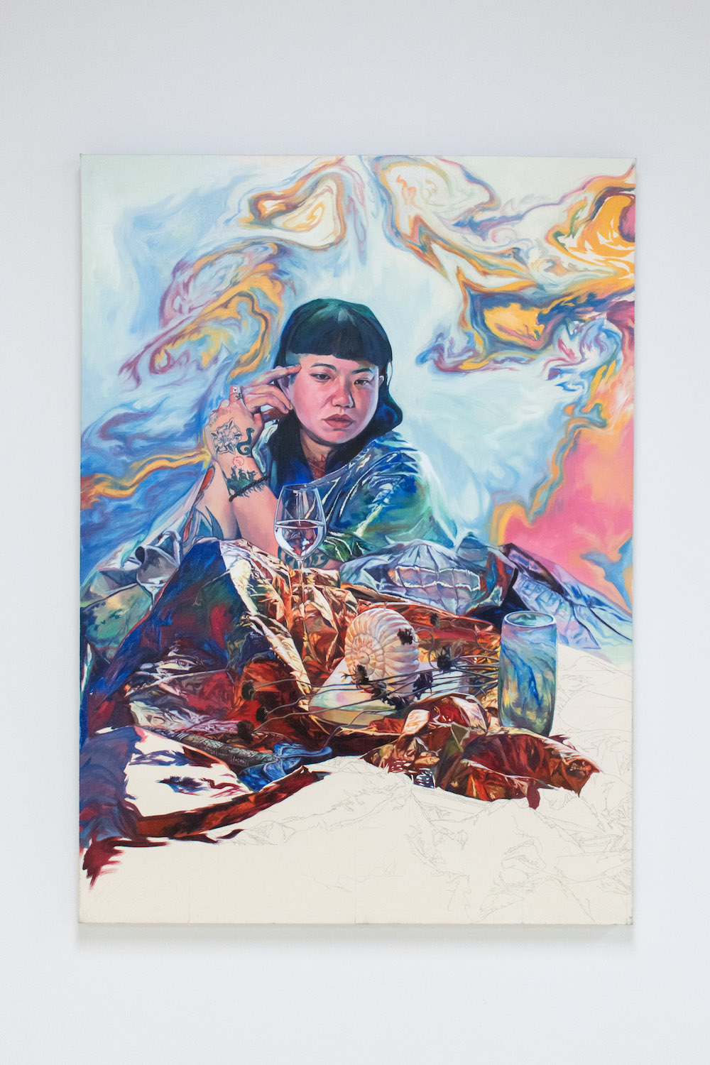 Biblical in origin, the idiom “at the eleventh hour” imparts resolution to a critical moment, usually in desperation. Implying the stress of time, the tenacity of work, belief systems, and oral tradition, the term’s sentiments appeal to us within contemporary usage. Spanning painting, sculpture, installation and ceramics, “At the Eleventh Hour” explores the interplay between labour, uncertainty and spirituality in the context of individual / collective experiences, personal / cultural mythologies, and art making as a laborious process. What external forces can carry on the work when we’ve reached our limits? Referred to as the “deus ex machina” within ancient Greek theater, actors who played angels were lowered onto stage to solve seemingly immovable problems through divine intervention. And so emerges a collective interest in structures of storytelling, theatricality, artifice, and the hero’s journey. In addition to an exhibition, “At the Eleventh hour” doubles as a stage for 3 play-inspired public performances set to occur towards the end of the show run.