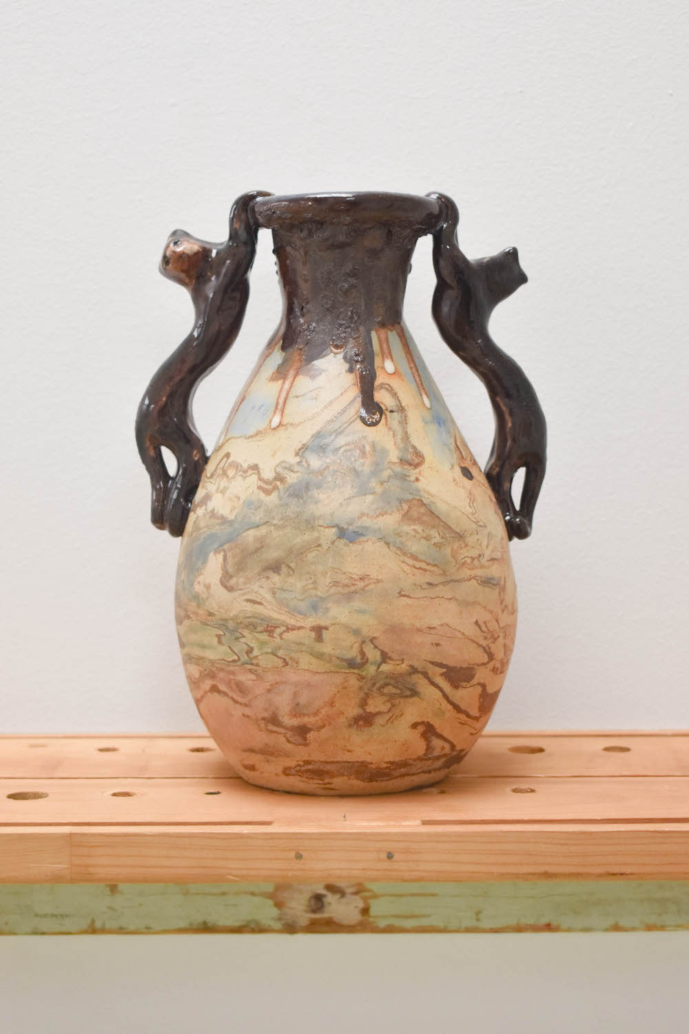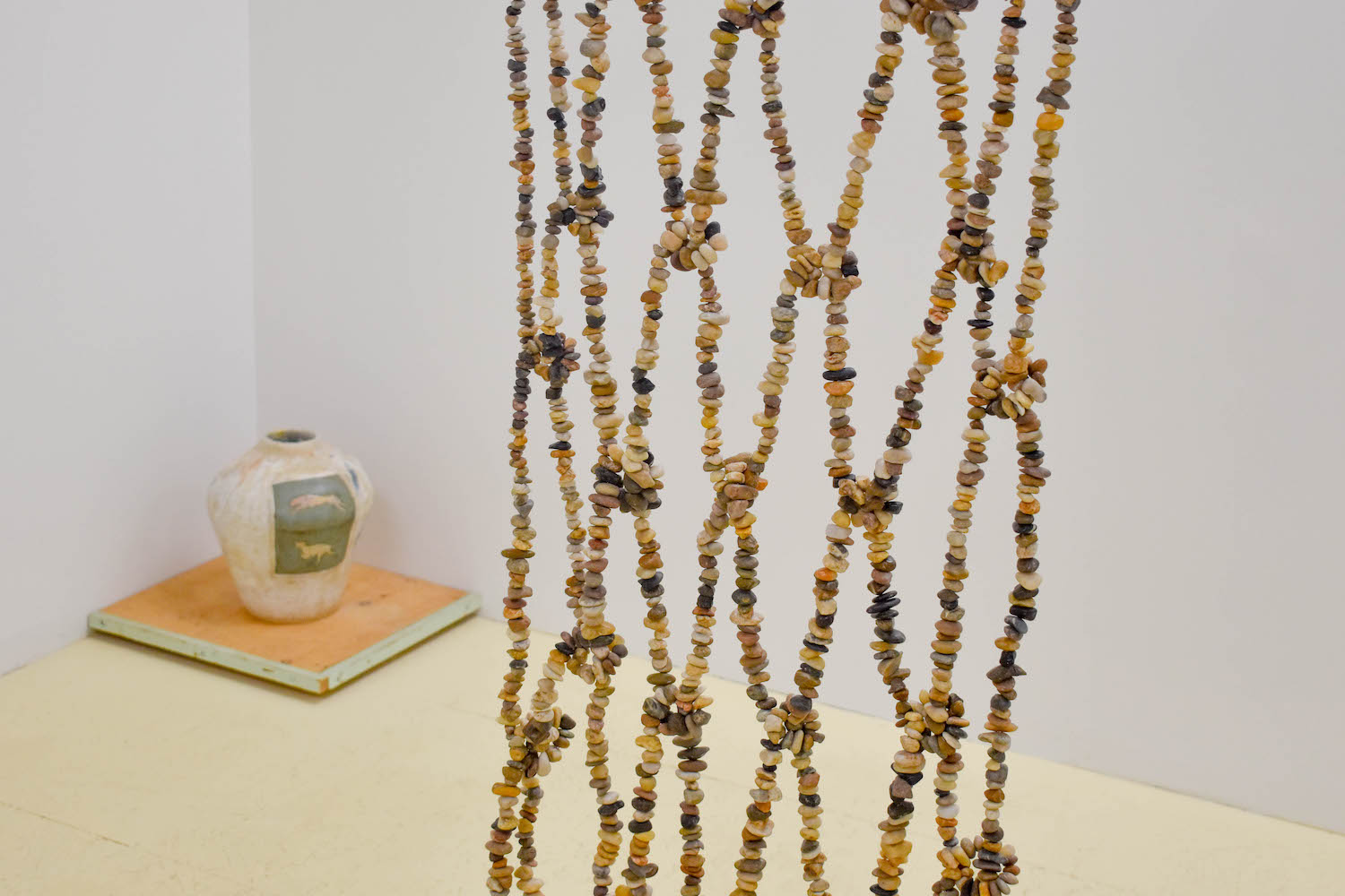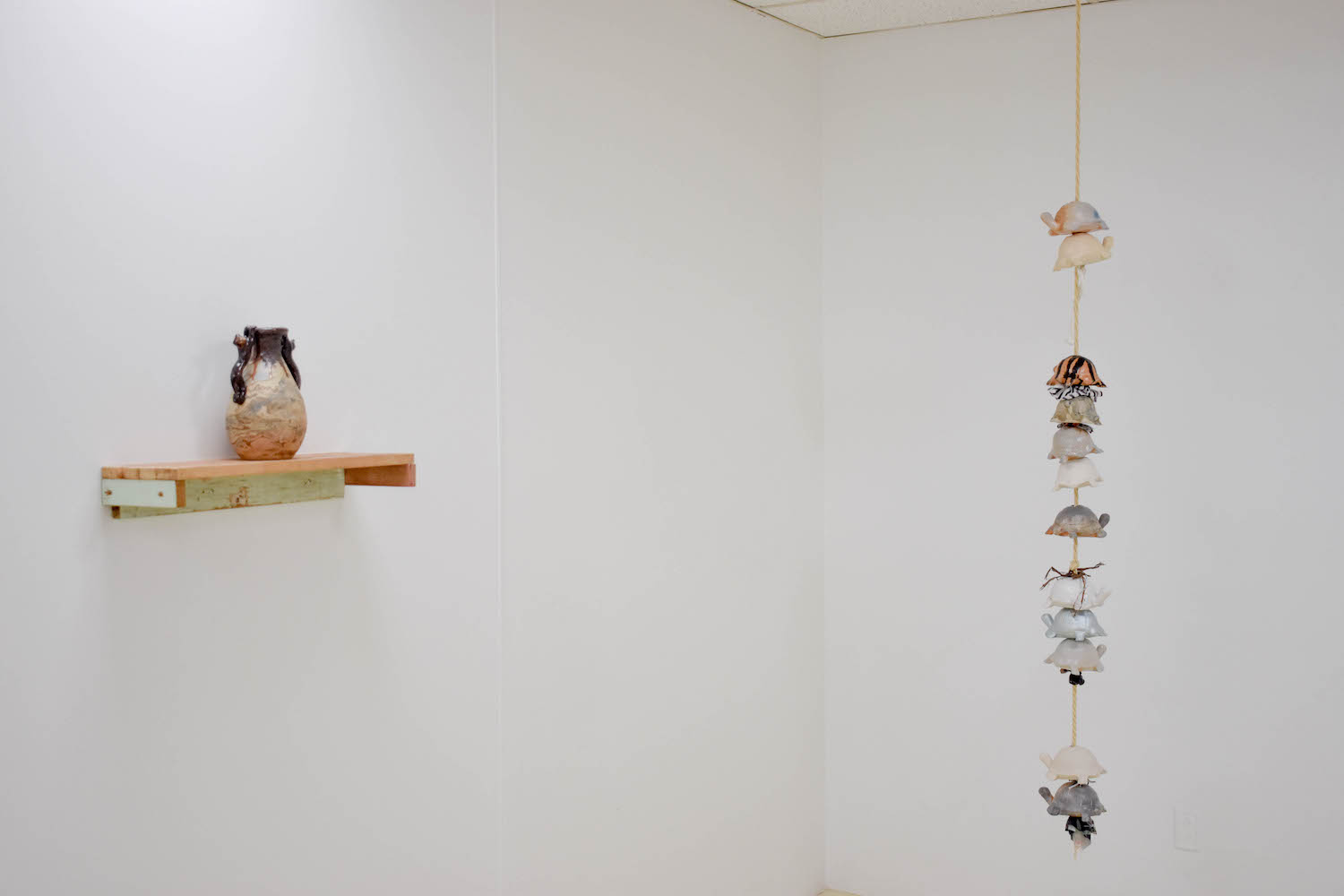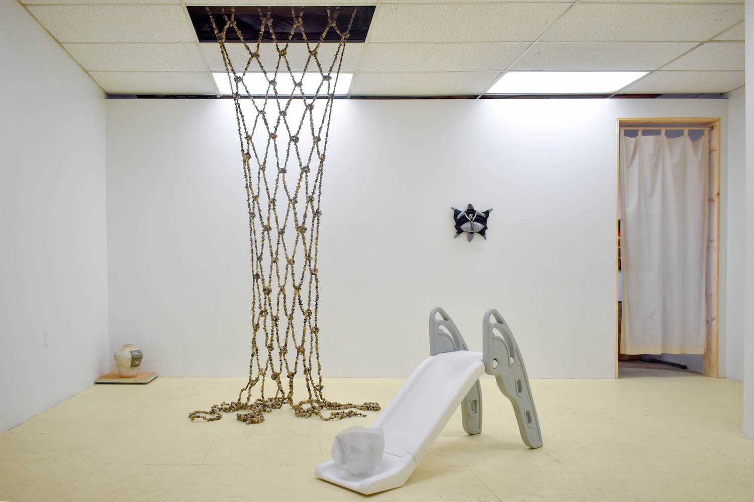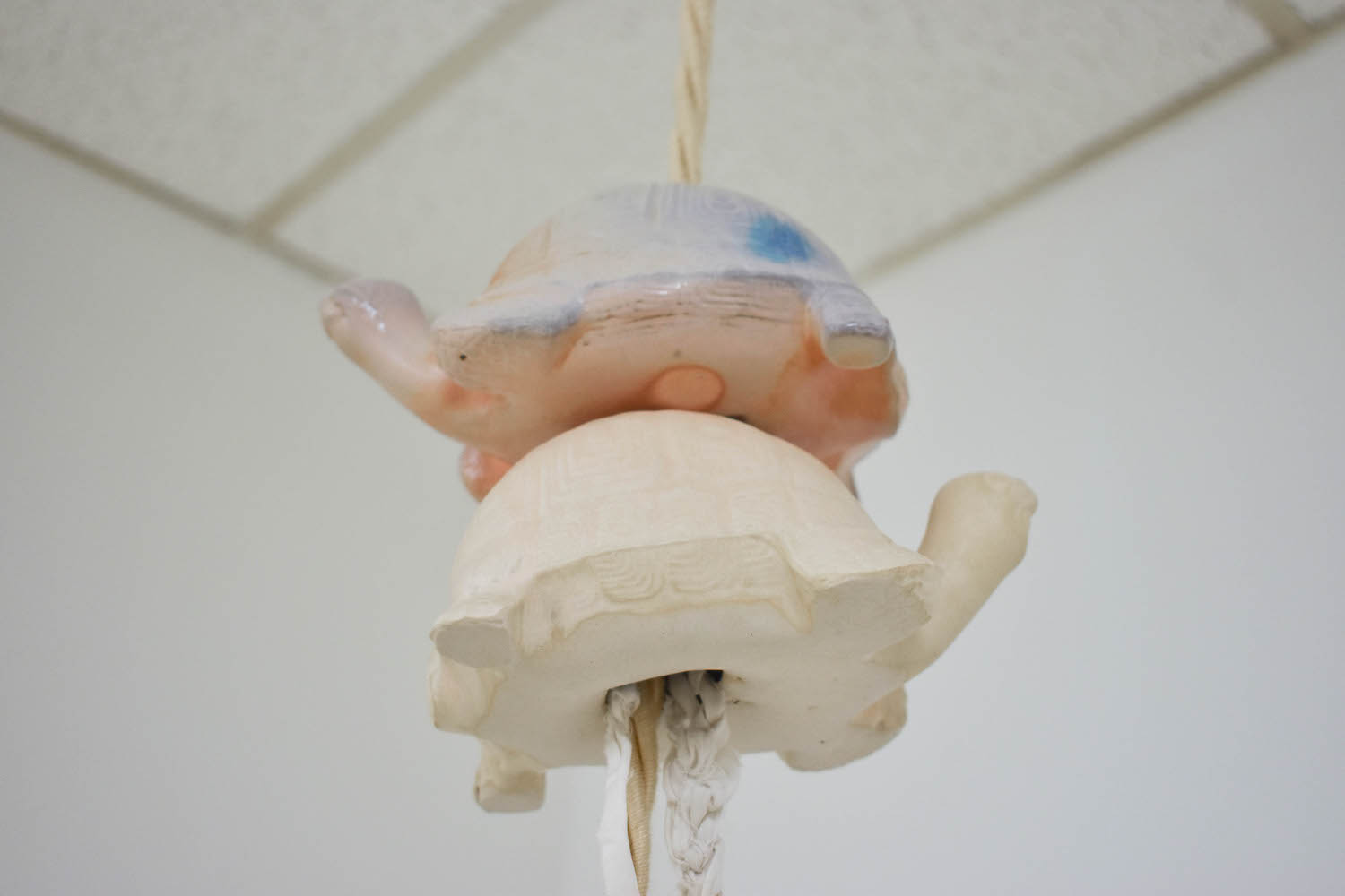 Here’s a place to pay respect to your lifestyle and the way you show it off. A film is forming giving you everything. That's what we have to gain. The author cannot be known enough. We have our fluster of files, piles, haircuts and leftovers. We also have the formalized methods of representing this time-stacking cosmos, our diaries. So, Misbah knocked the arms off the big pot from last time to fit it into the kiln. Otherwise it couldn’t get fired. The other one’s a bit skinnier so it fit just fine. We put it up on a shelf so you can get a closer look at the cats. There's also a fresh print on the opposing wall. Woven stone sounds like the name of your favourite guitar music band back in highschool. You totally forgot about them until you charged up your old mp3 player for the first time in 5, 10, 15 years. Shannon’s woven stone is strung up from the rafters in a different pattern than ever before. This tapestry(?) is really grungy and would make perfect cover art. We’re pet sitting for Andrew for a couple months. He says he’s busy letting materials say what they want to do when they get together, which has led him all over town! He’s learning from other folks who have taken a lot of care attuning to what these forces can afford. Play requires a great deal of trust, now he has this baby critter to take care of. It gets cold here so the little guy needed a snowsuit. Cadence just came back from the moon (Alberta) and all she got was tortoise spun grace. You can always tell what day of the week it is by looking at the colour of the shirt she's wearing. We love the colours of these hollow reptiles. What do the numbers mean? Is it a pattern? Or the simple fact of difference? We used to like the mirthless codes of representation because it helped us establish correspondence. Now we’re comfortable admitting it's mainly posture, twin-speak, butter fingers, and laughter that gets us in the pocket. And that sweet spot has a hole in it. The embrace. The last quarrel. The stretch euphoria. The moving being without identity. Larval in the language commons, maybe something will unfold in a year or two: let's wait and see. This is not a discussion of means nor ends. We’re talking about the little suspensions we carry with us. All these things. They move where something is nothing, that is, in the heart.